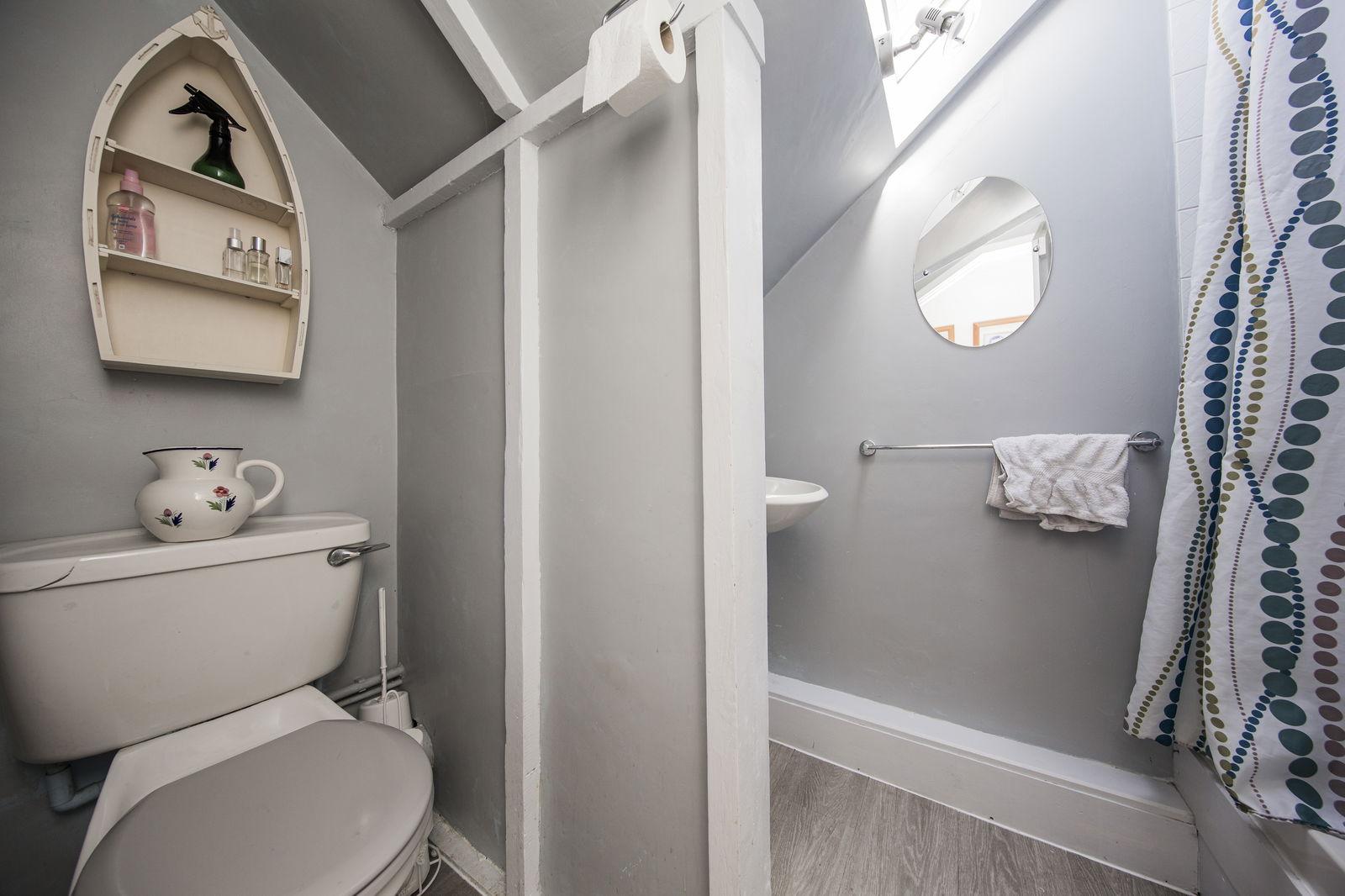SHOWER ROOM: Tiled cubicle with electric Mira shower, wc and wash hand basin.
