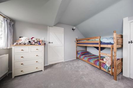 BEDROOM: Built-in wardrobe, door to good size loft area, fitted carpet and window to front with views across the South Downs.