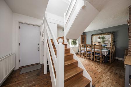 ENTRANCE HALL: Exposed floorboards, wall mounted alarm, radiator and stairs to first floor.