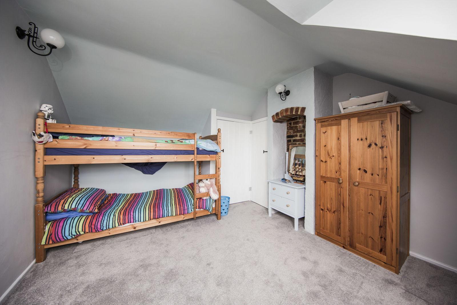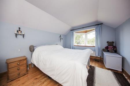 BEDROOM: Wardrobe cupboard, exposed floorboards and a large oriel style window with views over the rear garden.