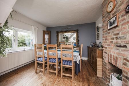 DINING ROOM: Brick fireplace, exposed brick walling, exposed floorboards and window to front.