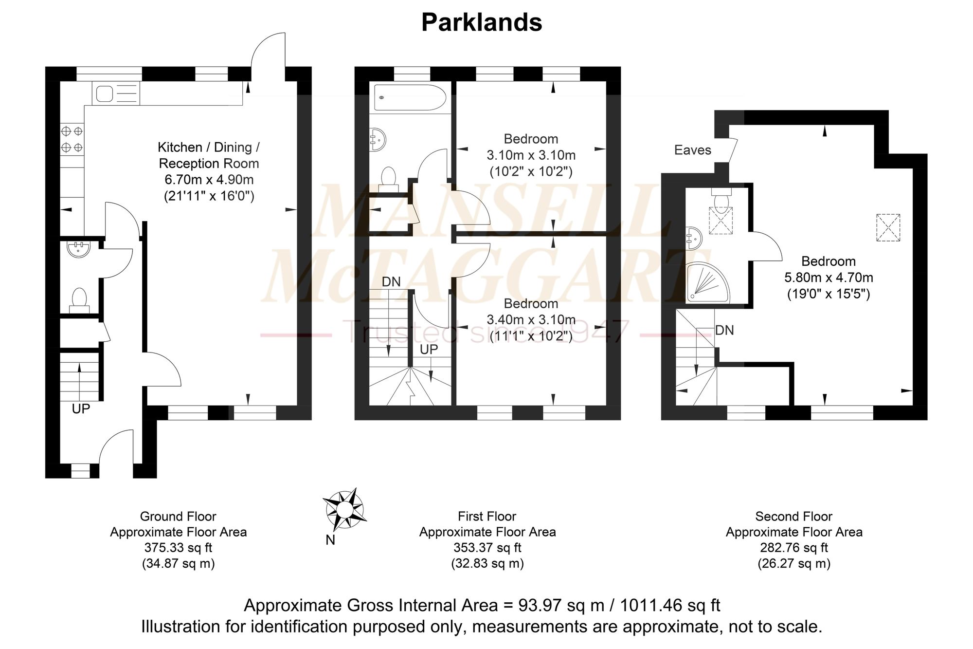 Boasting over 1,000 sq ft of accommodation this spacious property has been completely renovated to provide a brand new interior and benefits from, in brief, on the ground floor; an impressive open plan kitchen dining family room, the kitchen offers a range of matching units to eye and base level, integrated appliances and double doors opening onto the outside seating terrace, the entrance hall has a large storage cupboard, a downstairs WC and a staircase rising to the first floor. The first floor offers two generous double bedrooms, a beautifully fitted family bathroom and a staircase rising to the second floor, offering; a large principle bedroom with an en-suite shower room.