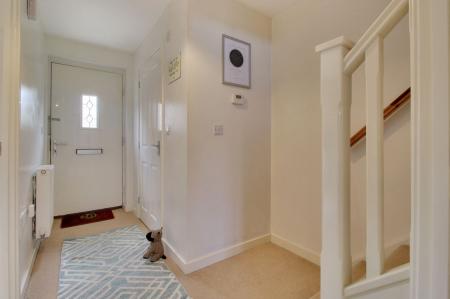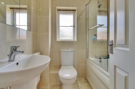 From the entrance hallway a staircase rises to the first floor landing, hatch giving access to loft space, airing cupboard, a 12'0 x 8’7 principal bedroom with en-suite shower room, two further bedrooms and a modern family bathroom comprising a panel enclosed bath with mixer tap and built-in shower.
