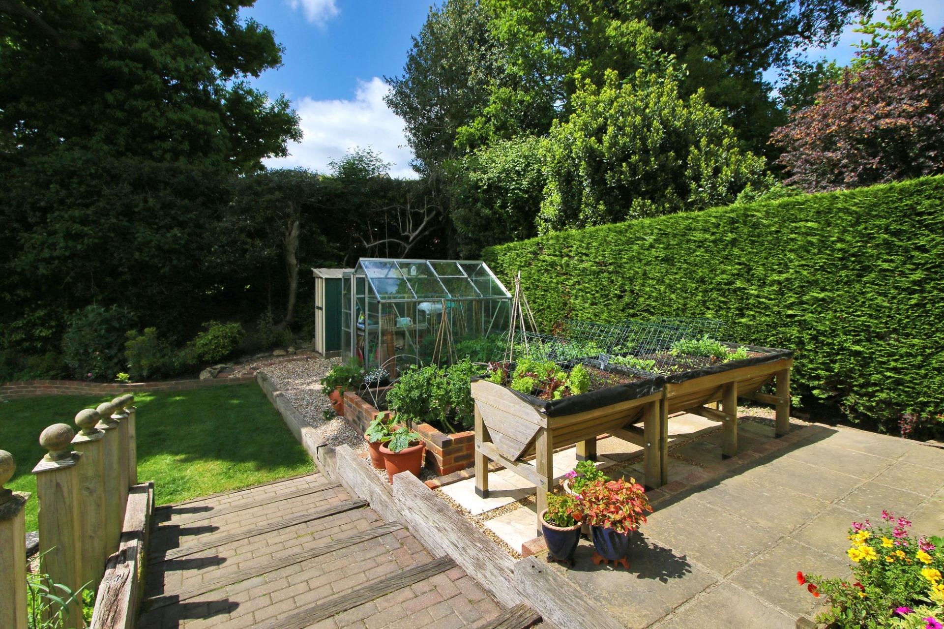 Outside, the west facing rear garden has been beautifully maintained and is mainly laid to level lawn, bordered by mature hedging and shrubs. A tiered seating terrace with a pond immediately adjoins the rear of the property and a vegetable garden has been created next to the annex and leads to a greenhouse and timber shed.