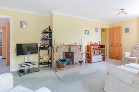 - Spacious sitting room with stone fireplace