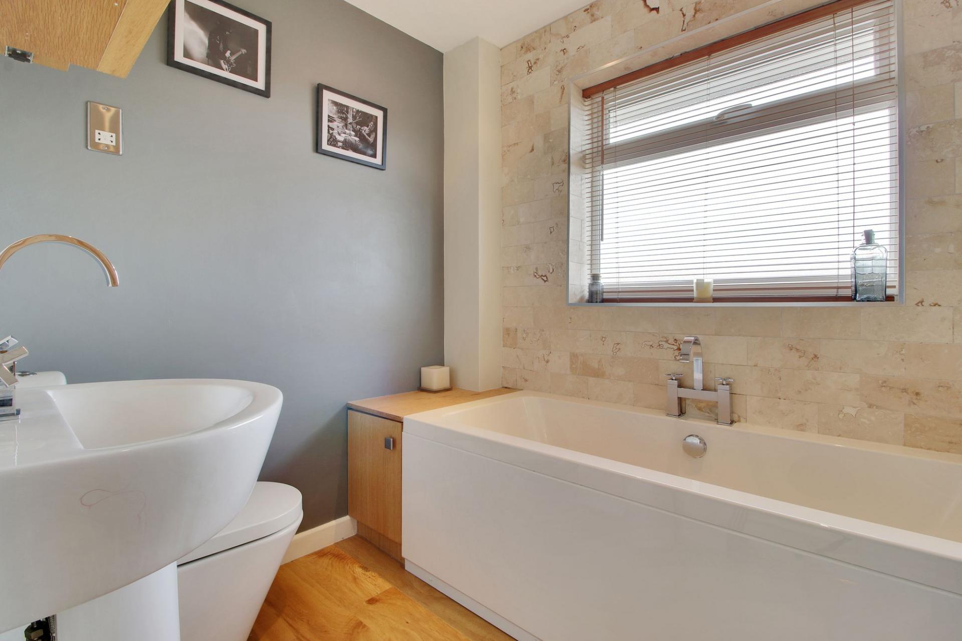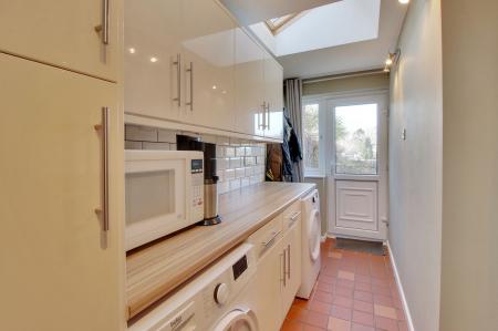 Outside the westerly rear garden has been thoughtfully landscaped to provide a excellent relaxing and entertaining area with a seating terrace immediately adjoining the rear of the property with an area of level lawn bordered by raised beds and mature shrubs. Steps to one side of the garden provide rear access and lead to the garage and parking.