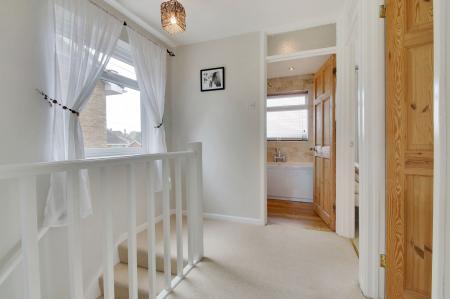 From the entrance hallway a staircase rises to the first floor offering; a main bedroom with a built-in cupboard, a generous second double bedroom with a range of fitted mirrored wardrobes, a beautifully fitted family bathroom with a double ended bath and a good sized third bedroom.
