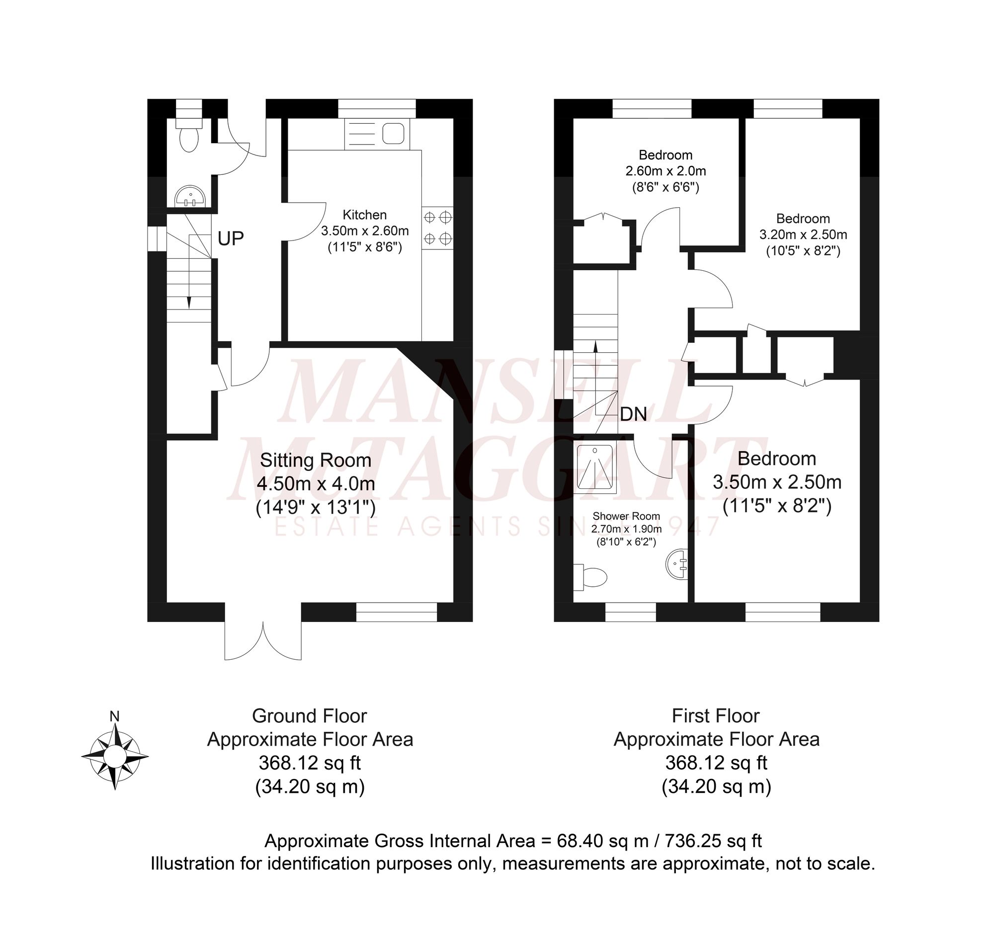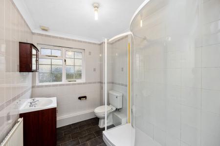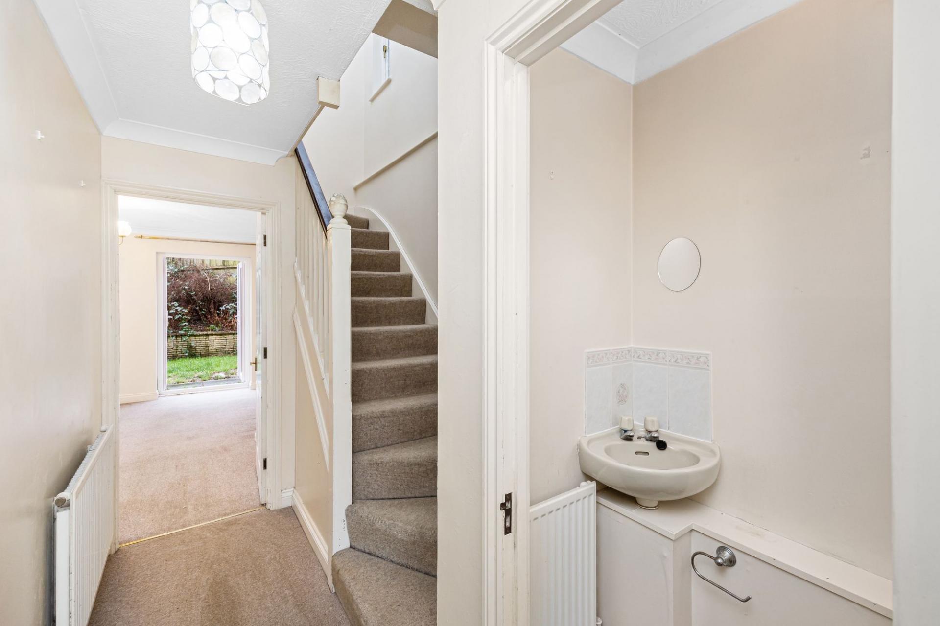 From the entrance hall a staircase rises to the first floor offering a generous principle bedroom with built-in wardrobes, a modern shower room with walk-in shower and two further bedrooms both of which also offer a built-in wardrobes.