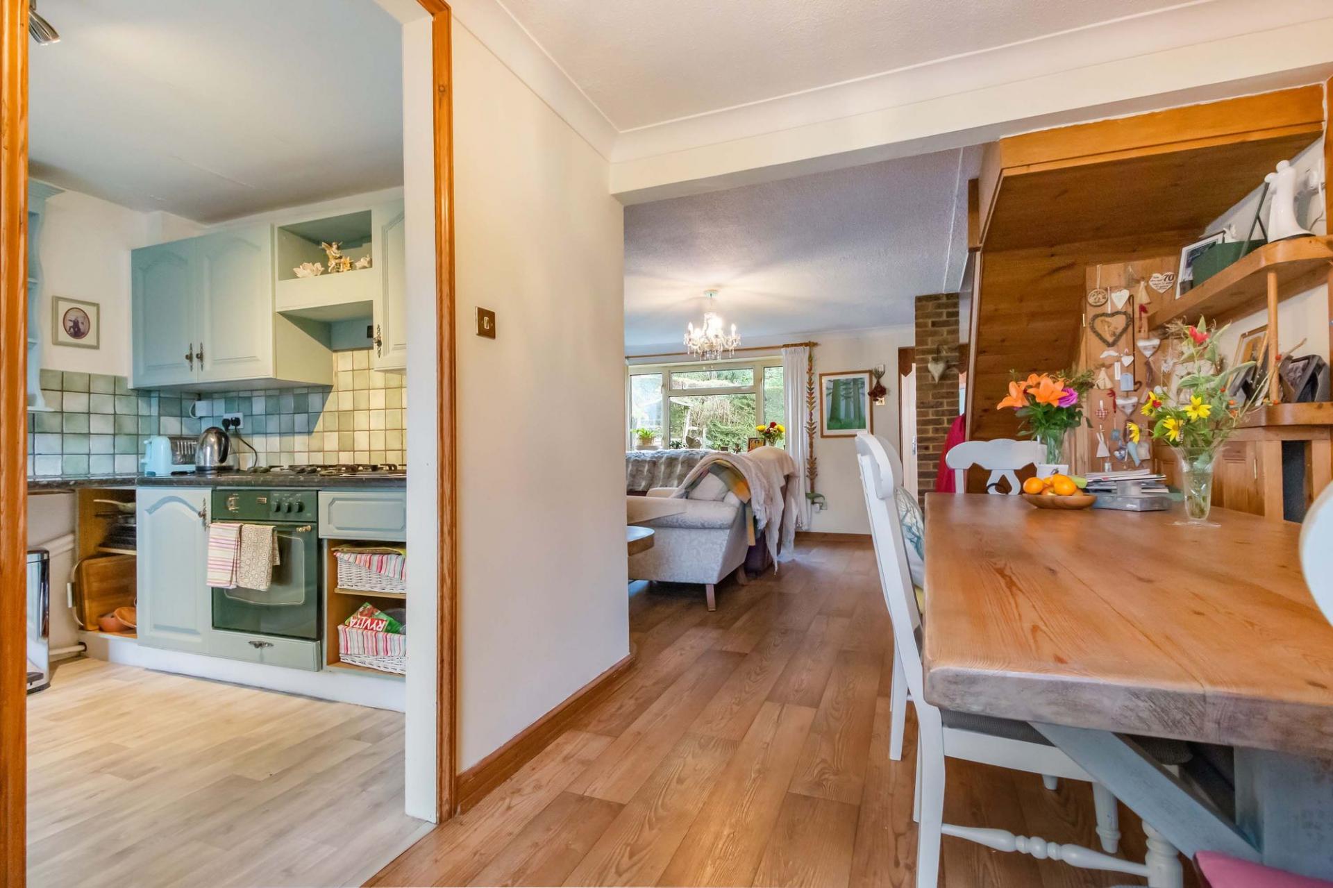 This very spacious property has been significantly extended by the current owner to create a double length and double width garage with a principle bedroom suite above and benefits from, in brief, on the ground floor; a kitchen with a range of matching units to eye and base level and door to the rear garden, a dining area with patio doors leading to the rear garden seating terrace and living room with a log burning stove.