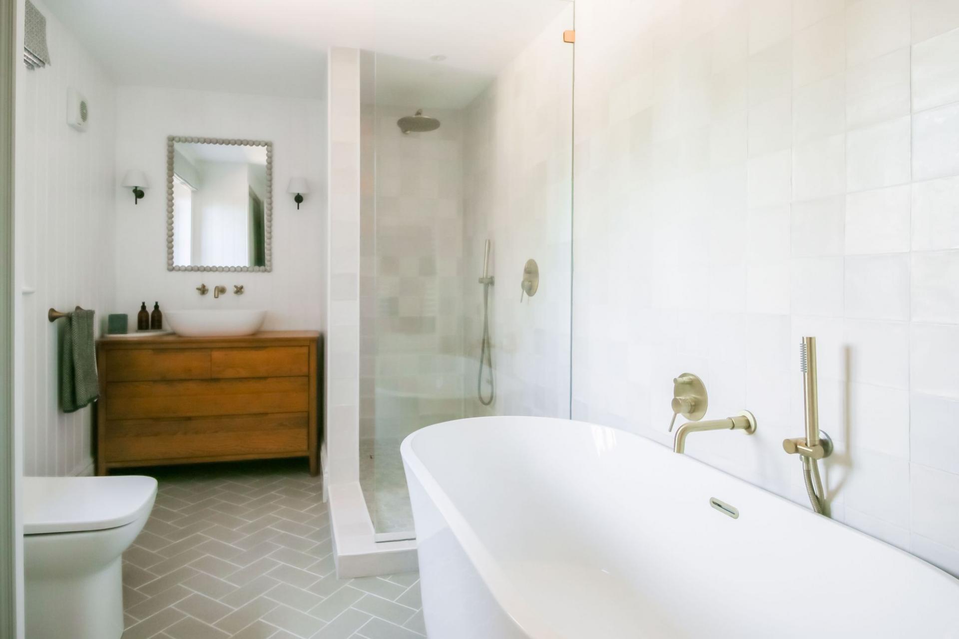 - Stylish family bathroom with freestanding bath and walk-in shower