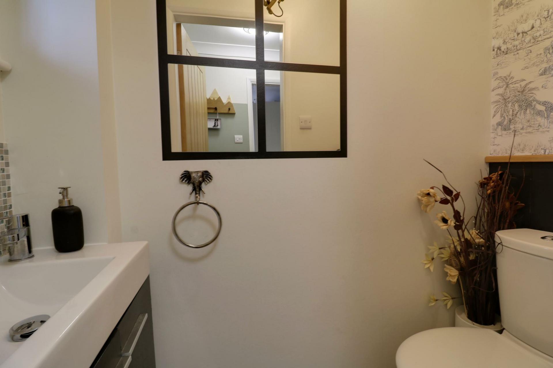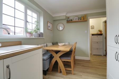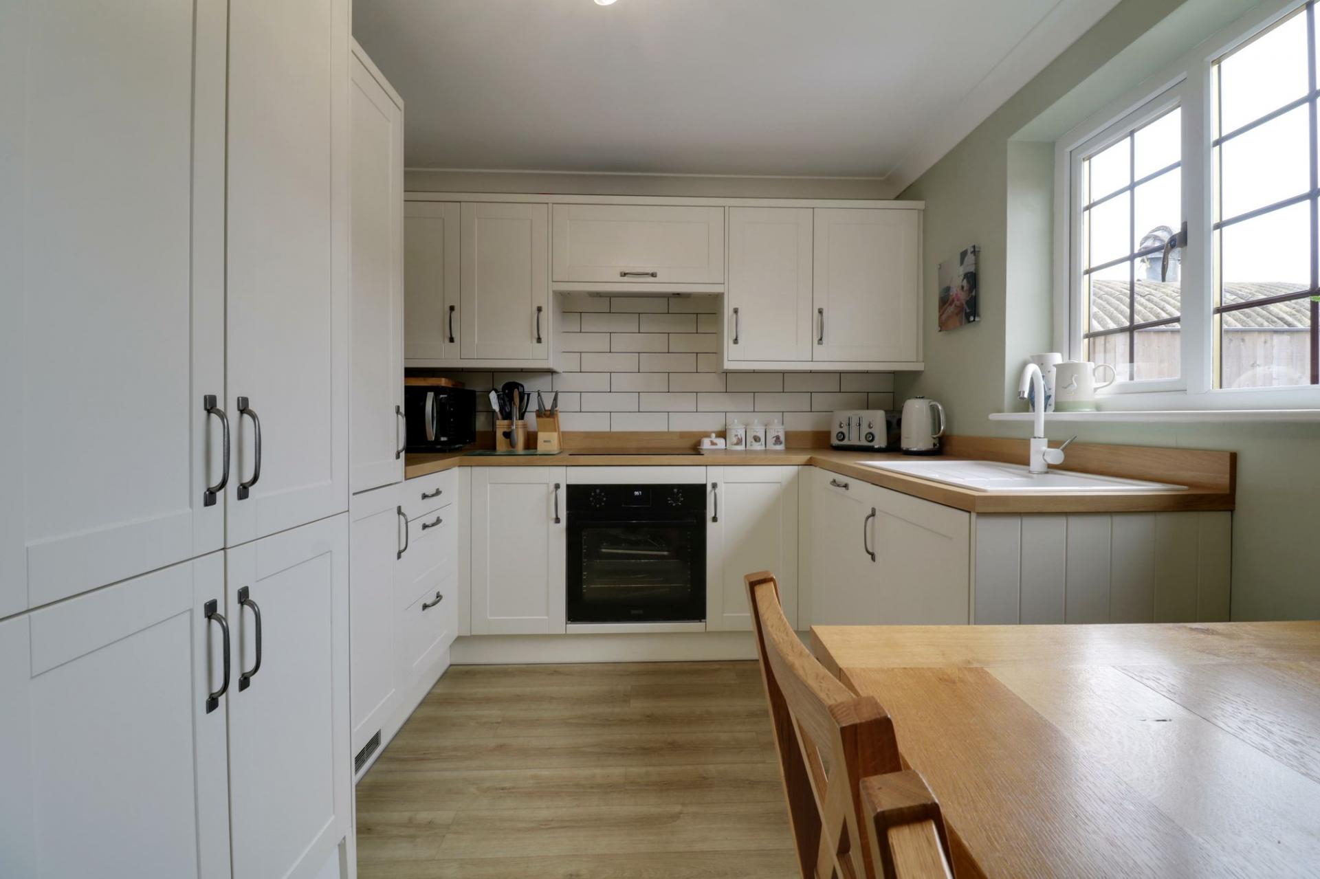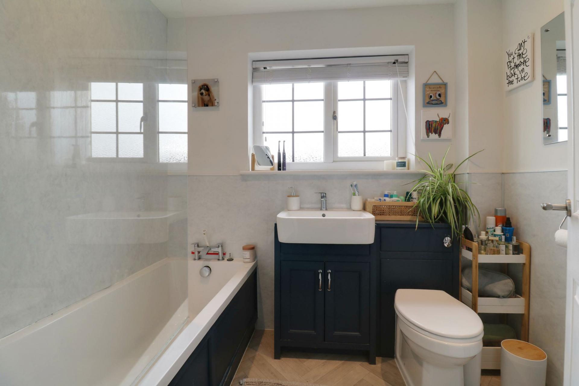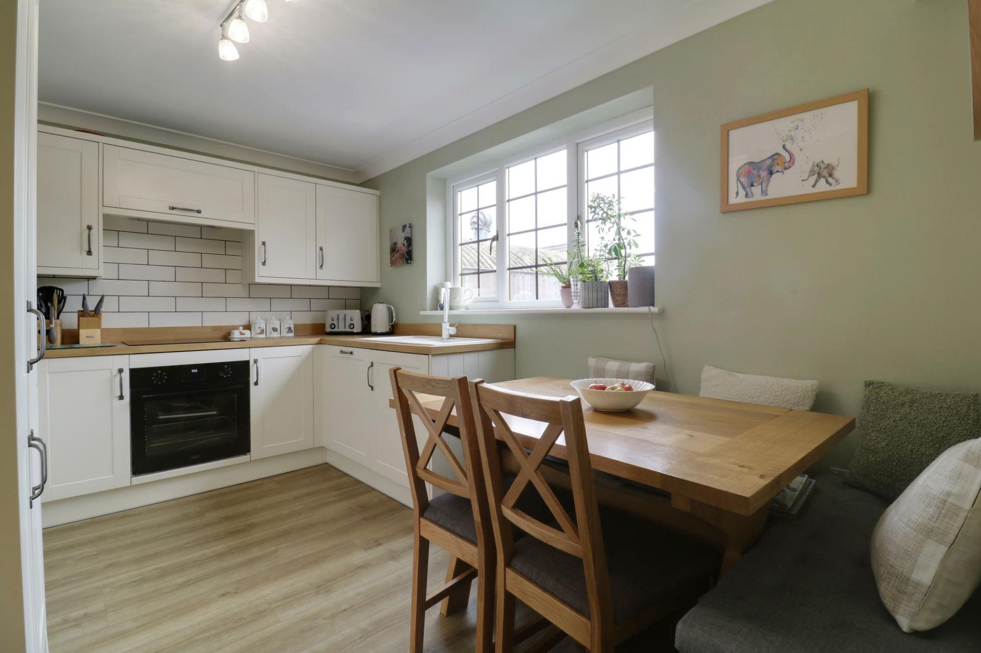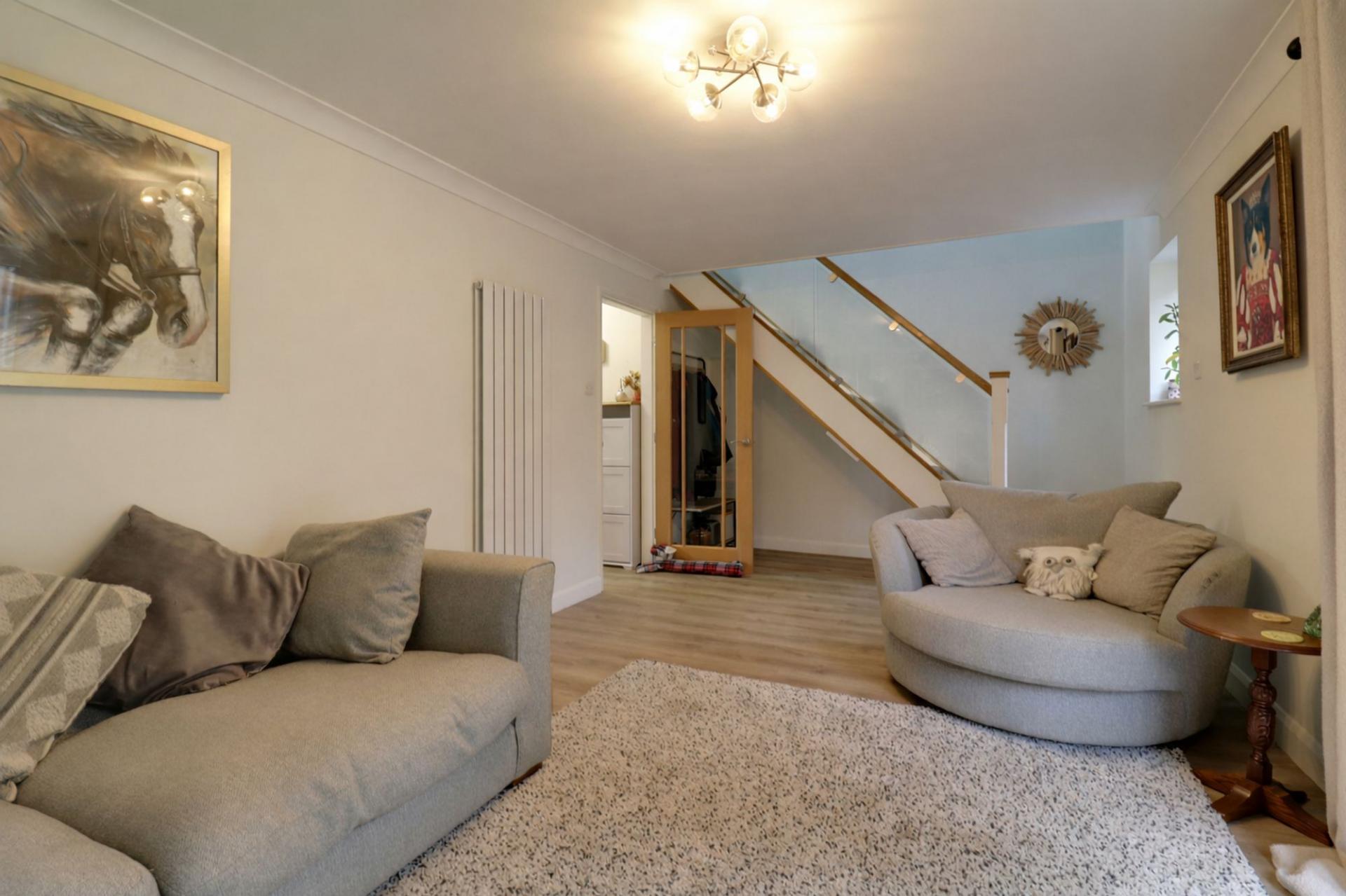 The property is entered via a welcoming entrance hallway with a convenient ground floor cloakroom. To the front, there is a contemporary fitted dining kitchen, while to the rear, a spacious living room provides an excellent entertaining space, complete with sliding patio doors opening onto the rear garden.