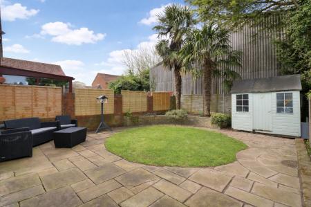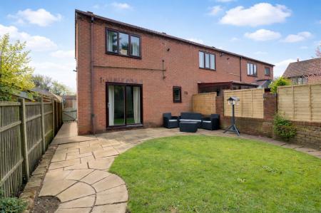 Externally, the property enjoys a private and enclosed rear garden, predominantly laid to lawn with a paved patio seating area—perfect for outdoor dining. Side gated access leads to the front of the property, where a broad driveway provides off-road parking for two vehicles.