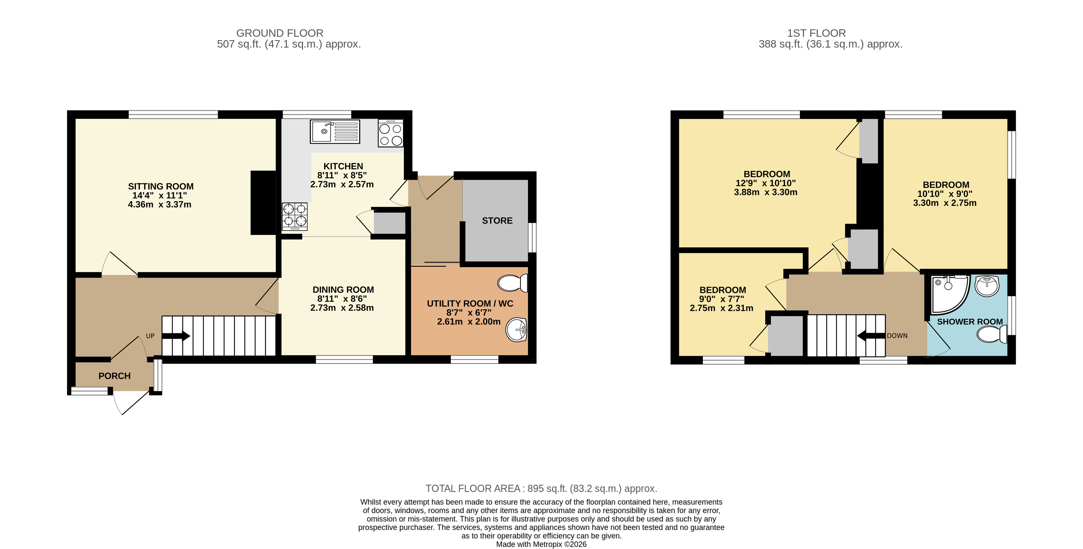 Kitchen 8'11"x8'5" (2.72mx2.57m).