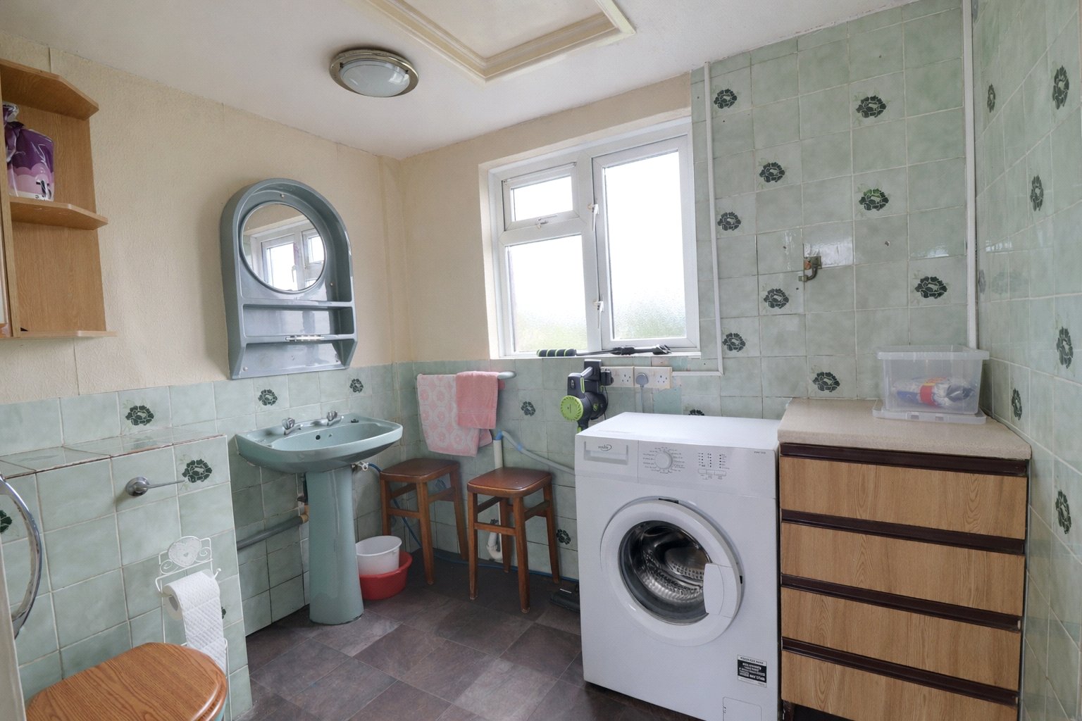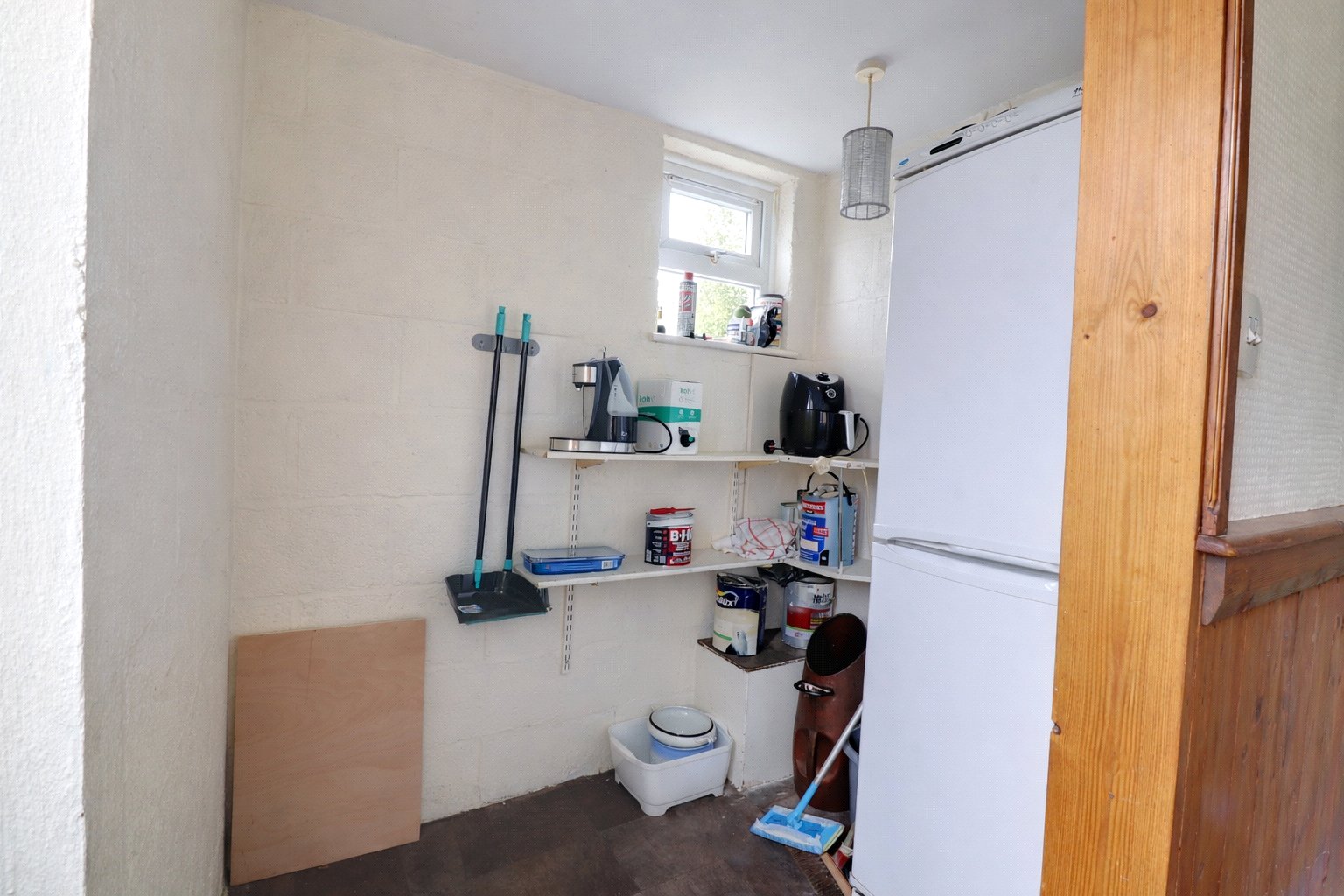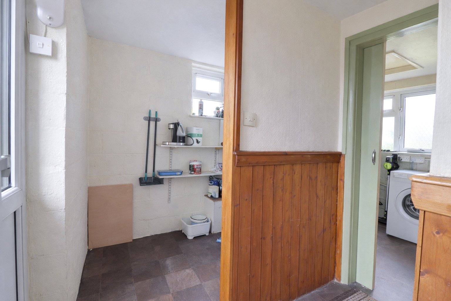 Beyond the kitchen is an inner porch with a store room, and from here the layout continues to a utility room with WC, hand wash basin and plumbing for white goods, giving the house useful secondary space for everyday routines.