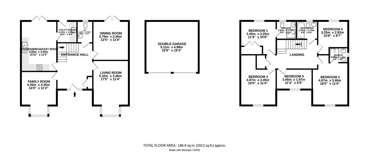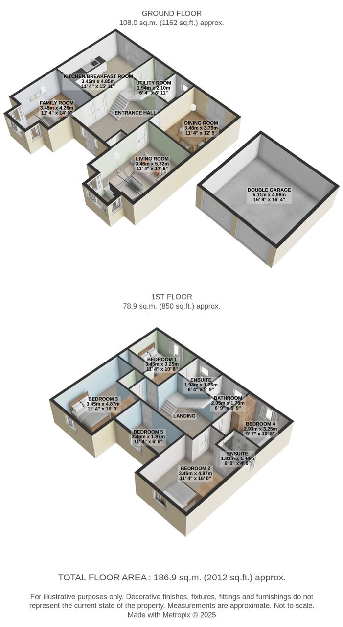 - Five double bedrooms, two with ensuite