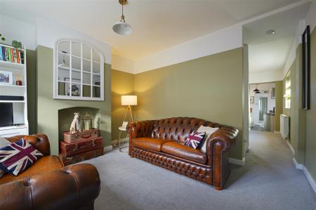 Dating back to1880, the property boasts a pale painted rendered façade complemented by contemporary uPVC windows. The front door is set beneath a distinctive projecting pitched porch, leading into a delightful sitting room with a chimney breast. A small opening remains in place, offering the potential to install a wood-burning stove if desired.