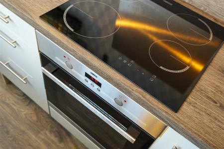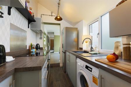 The kitchen is a particular highlight, featuring a vaulted ceiling with pendant lighting and a window to the side return. There is a comprehensive range of wall and floor units incorporating a sink with mixer tap, cooker, and induction hob, while still allowing ample space for freestanding appliances.