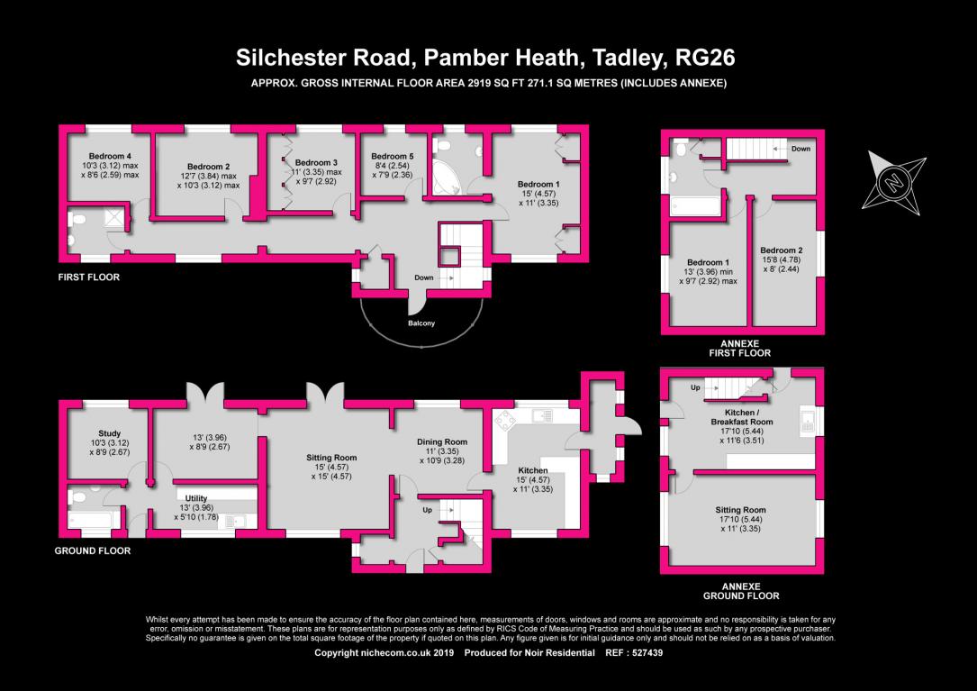 SUBSTANTIAL 5 BED HOME + 2 BED ANNEXE IN GROUNDS - noir by david cliff - This lovely 1950`s built detached home sits in a gated plot of circa 0.6 acres and situated towards the end of a private lane away from the road. Offering fantastic and very versatile accommodation which will appeal to families and those requiring additional accommodation perhaps for parents or young adults. The main house offers entrance hall, fitted kitchen/breakfast room with a dual aspect, separate dining room, living room with fireplace and access to the wonderful gardens, family room, study, utility room and bathroom. To the first floor there is a large landing with access to the balcony. The master bedroom has an en suite bathroom and there are 4 further bedrooms, shower room and cloakroom.
