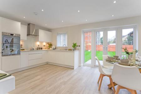 BRAND NEW DETACHED HOME - Behind the classic facade of this four bedroom detached house you will discover all the contemporary features you could wish for in the perfect family home. The fully integrated and fitted kitchen/dining/family room has French doors opening onto the rear garden to provide a light, airy environment, while the separate, dual-aspect lounge and downstairs cloakroom add those welcome practical touches. On the first floor you will discover four double bedrooms, the master with an en suite shower room and built in wardrobes plus a modern family bathroom. There is a single attached garage to the side of the property and three additional parking spaces.