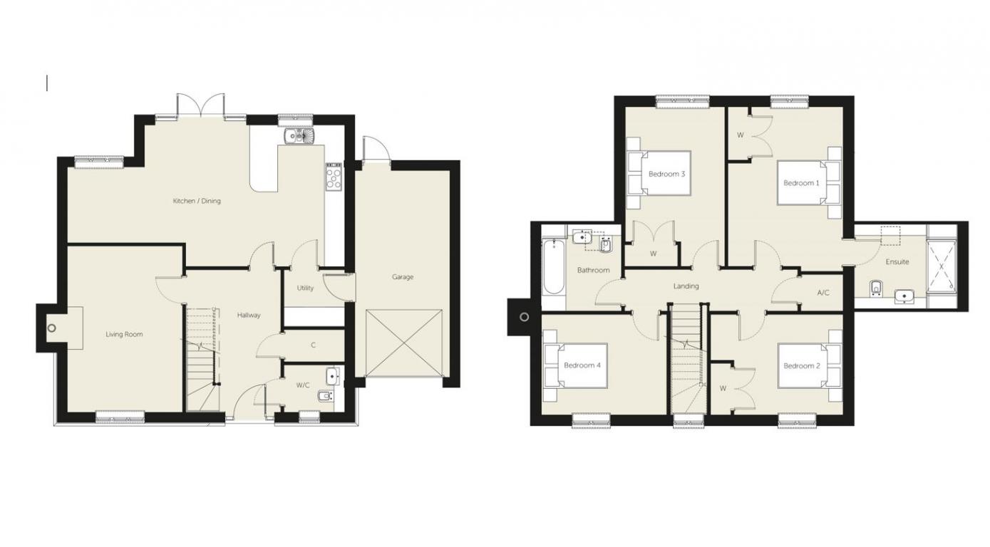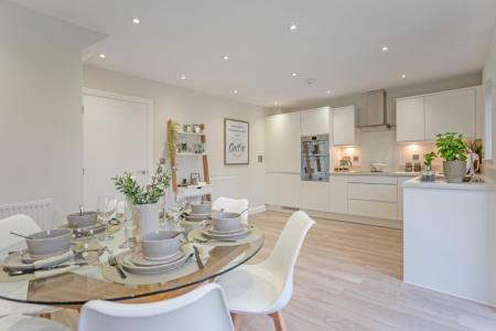 A gorgeous detached four bedroom home with space for the whole family. With a perfectly proportioned hallway from which glazed doors lead onto a fabulous open plan kitchen/dining room, light and space abound in this gorgeous detached four bedroom home. And it is every bit as practical as it is stylish. Beside the separate large living room with welcoming fireplace, for example, there is also a utility room and cloakroom on the ground floor. Upstairs you will discover four double bedrooms (the master with en suite) and a family bathroom, so it is simply perfect for the growing family. Outside there is a single attached garage and a further two car parking spaces.