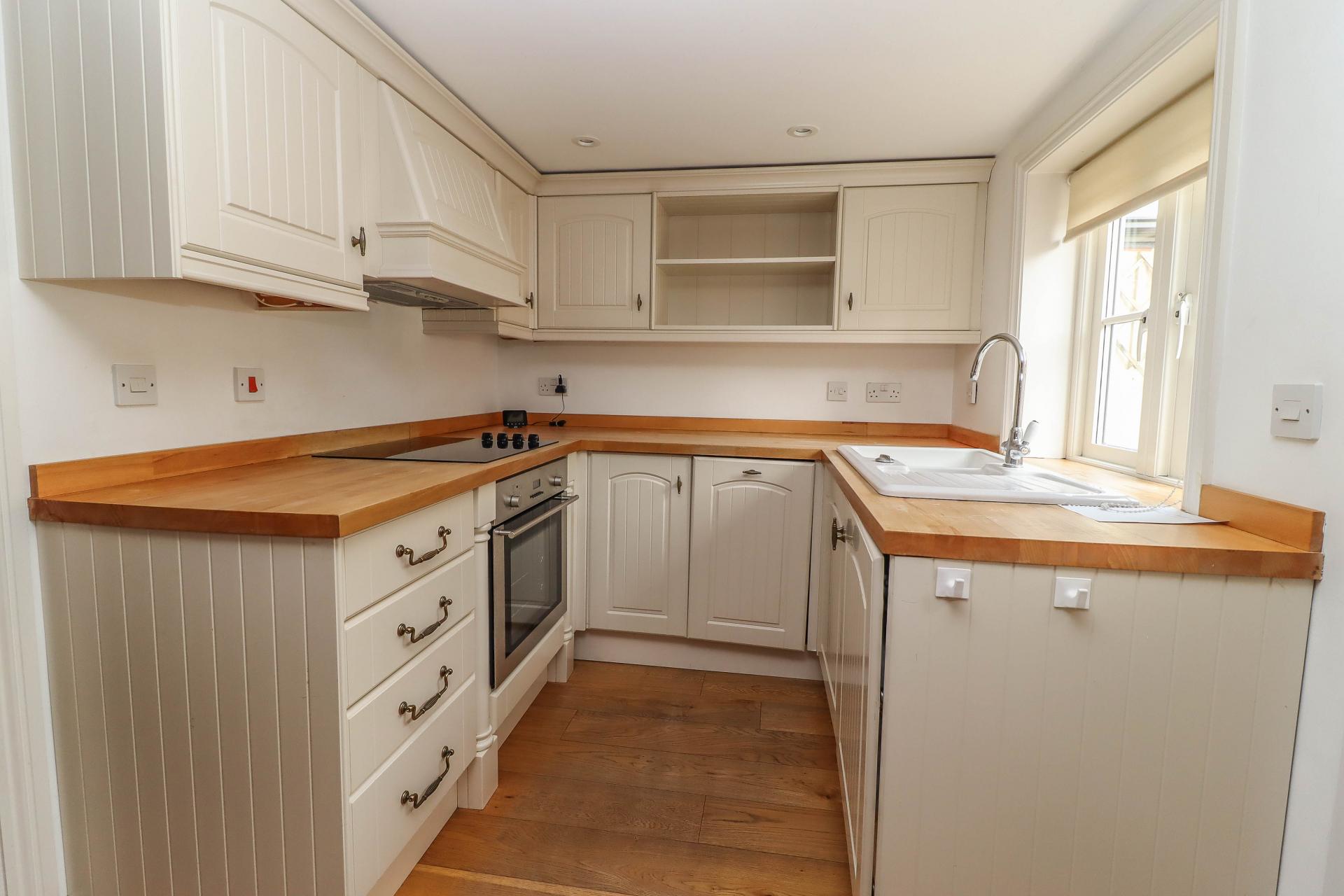 KITCHEN Ceramic 1½ bowl sink unit with mixer tap and drainer. Range of cream Shaker style high and low level cupboards and drawers, shelving, plate rack and wine storage. Beech block work surfaces and upstand. Under-counter Diplomat oven/grill. Four ring ceramic hood with decorative extractor hood above. Integrated slim-line dishwasher, fridge, freezer and washing machine. Small breakfast bar. Oak flooring. LED down lighters. Stable door with windows to either side leading into rear garden.