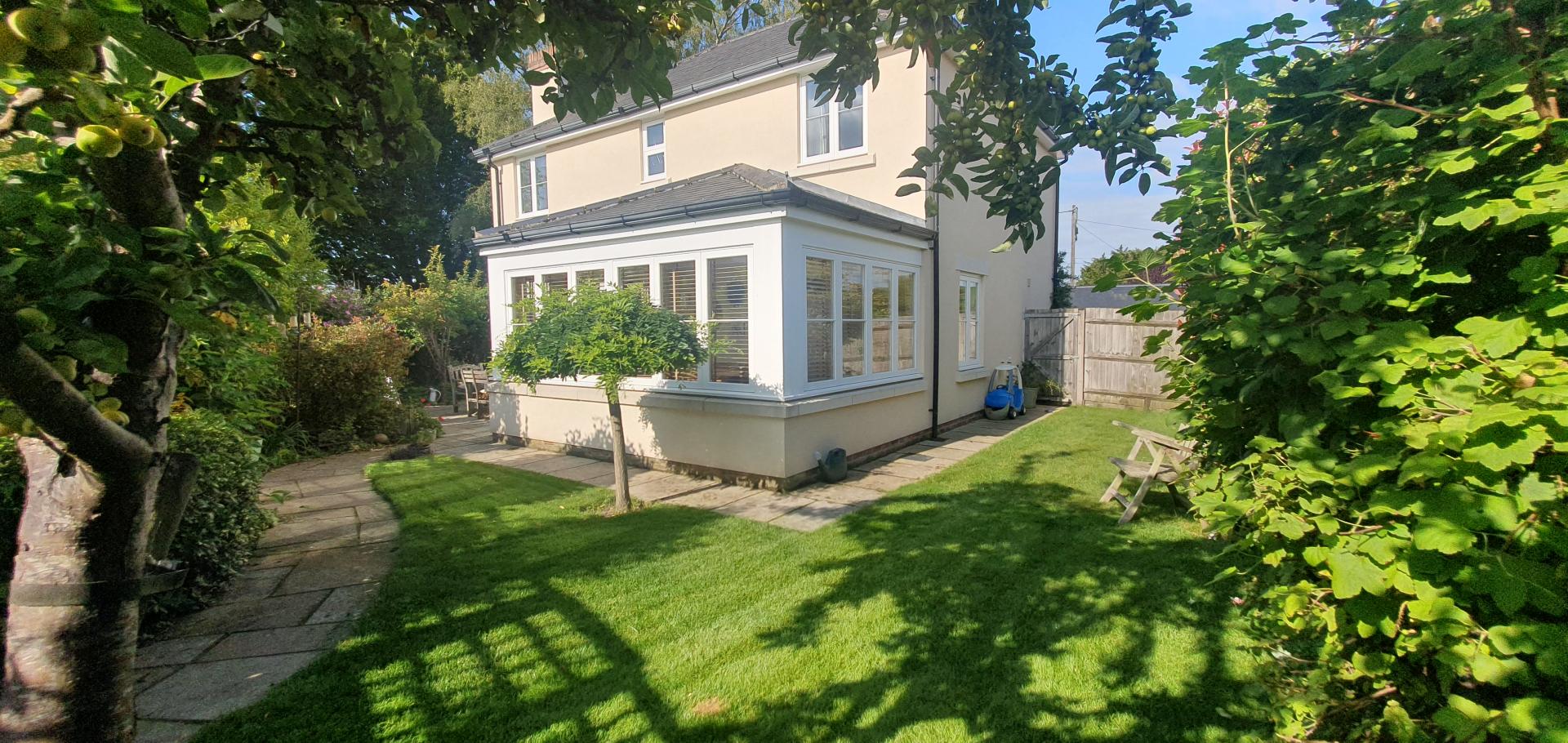 An individual modern detached four bedroom house with garage and westerly facing garden in a tucked away position within...