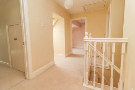 CENTRAL LANDING Alcove and large Velux window to rear aspect. Pendant light point. Hatch to large boarded loft space. Panelled doors. Deep cupboards housing lagged hot water cylinder with slatted shelving above. Doors to: