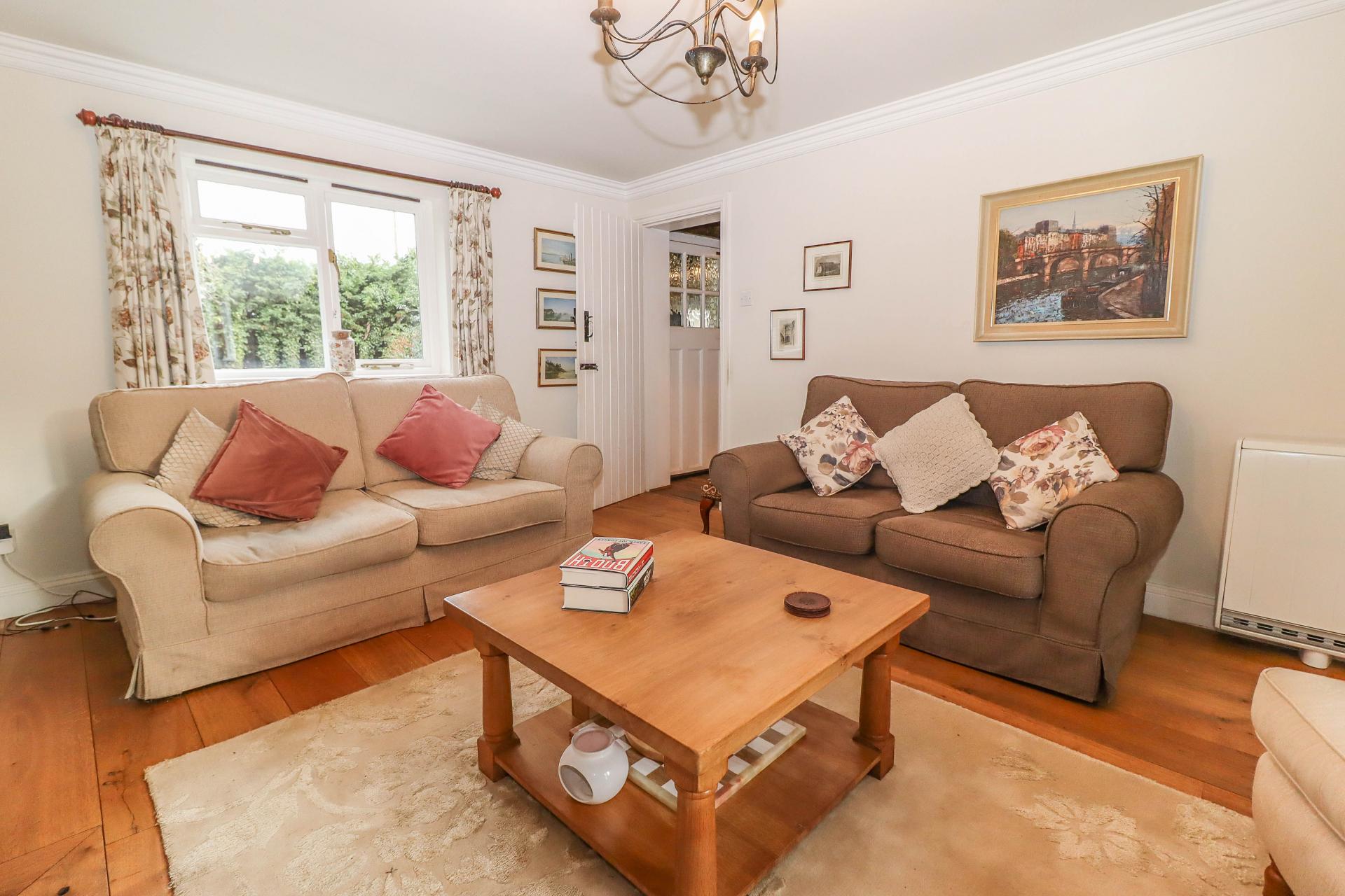 ENTRANCE HALL Staircase rising to first floor. Ledged latch doors into living room and sitting room. Exposed oak floor boards.