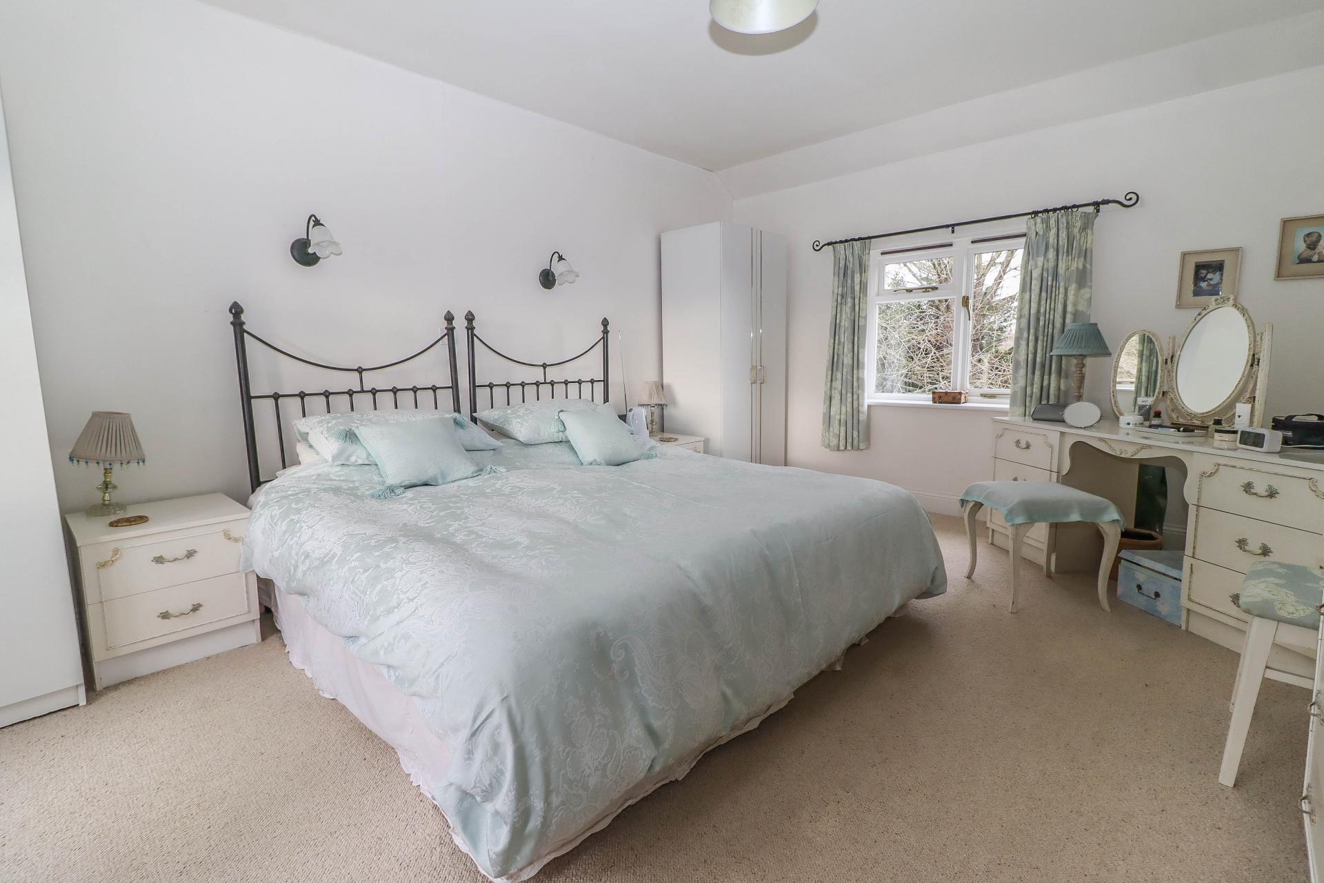 PRINCIPAL BEDROOM (Substantial dual aspect double bedroom) Windows to rear and front aspect, the front with far reaching views towards farmland and countryside. Pendant light point. Wall light points. (It may be possible to convert this room into two smaller bedrooms, if required).