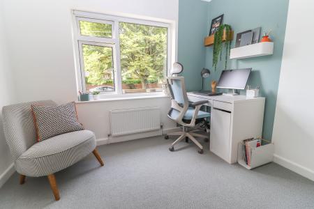 BEDROOM FOUR (Double bedroom) Window with views over the rear garden. Pendant light point. Shelf. Oak effect flooring.