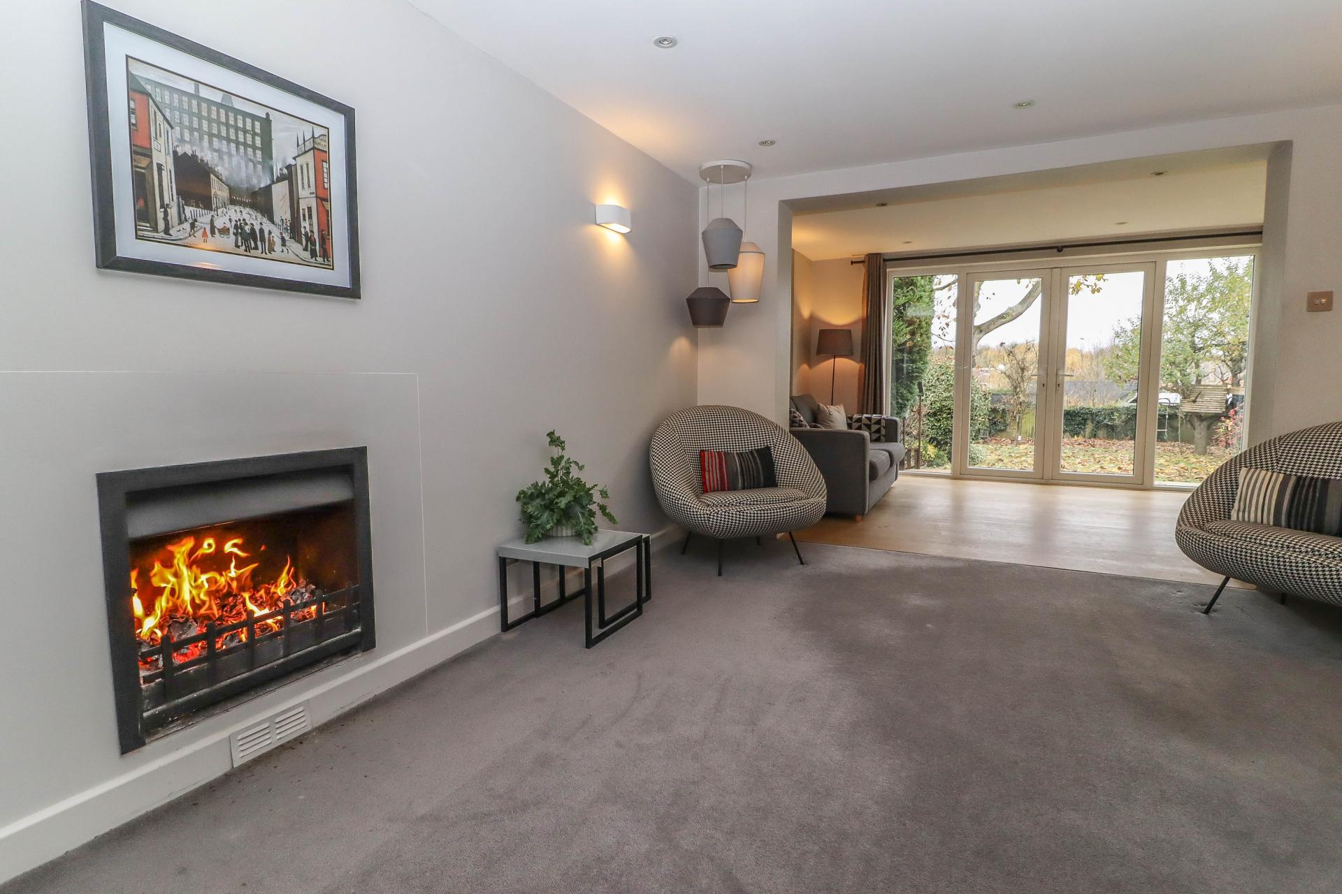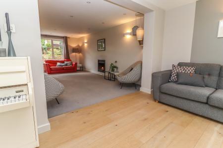 LIVING ROOM (Large reception room) Inset Jetmaster fire. Window to front aspect. Wall light points. Down lighters. Opening into: