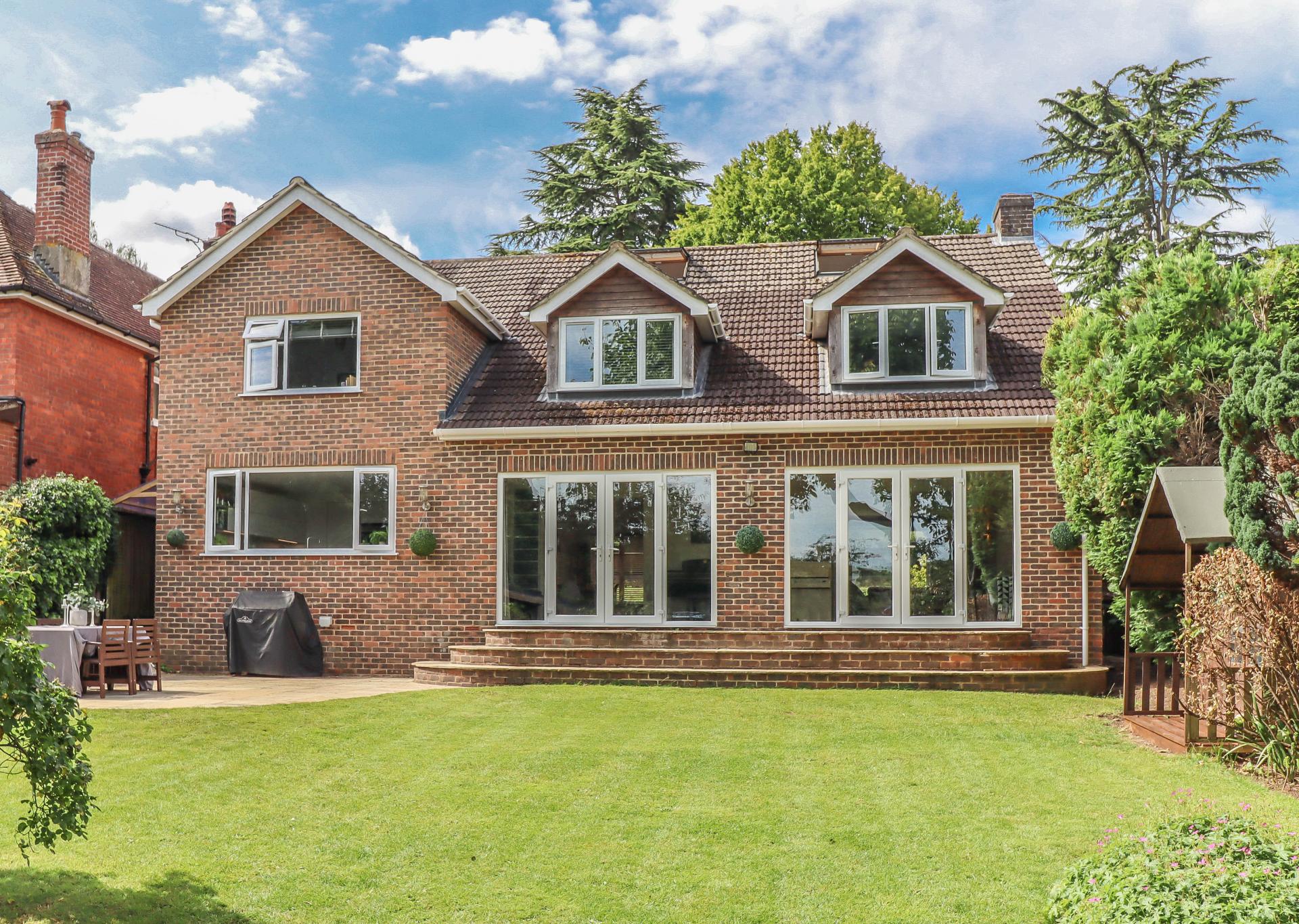 A detached house that has been extended by the present owners to provide extensive well-appointed and beautifully presented family accommodation, light and airy throughout with good sized rooms. A particular feature of this property is the large well enclosed rear garden with mature walnut tree and useful outbuilding. The accommodation comprises a reception hall, living room with open fireplace, dining room, garden room and luxury German kitchen and an inner hall with utility, separate boiler room and cloakroom. To the first floor there are six bedrooms (two with en suite showers), and an excellent family bathroom and useful carpeted loft.