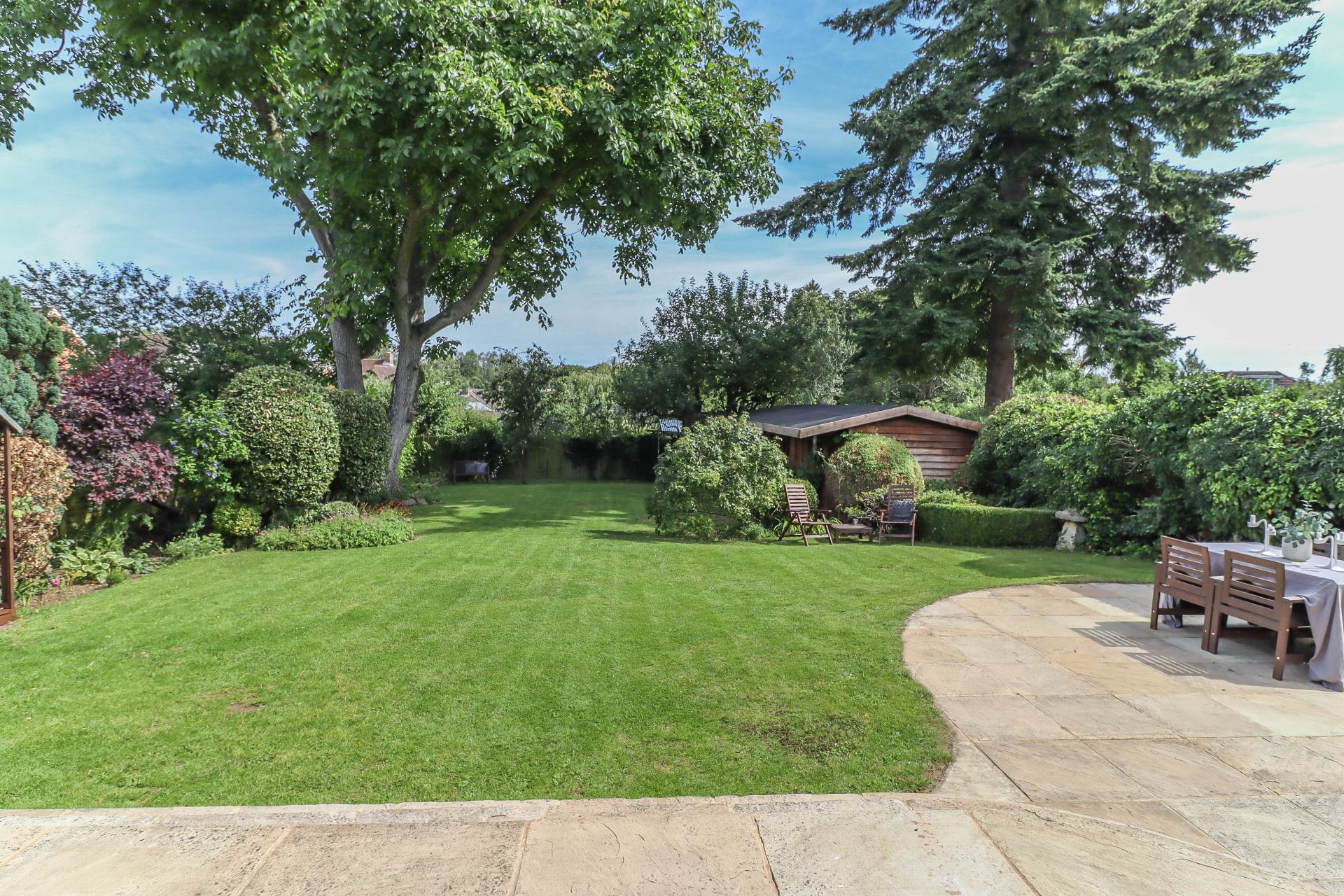REAR GARDEN Comprises a generous split level sandstone terrace, ideal for entertaining. Outside lighting and power point. The garden is laid to gently sloping lawn with magnificent mature walnut tree and deep well stocked borders. The garden is peaceful and well enclosed by fencing, hedging and tree. Fruit trees including mature apple with tree house and swing. Wendy house.