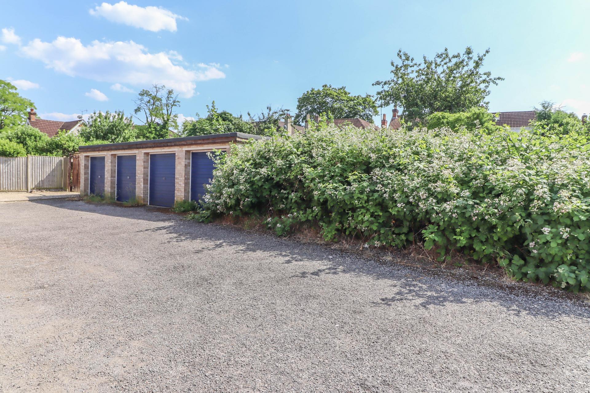 A block of four garages constructed of brick elevations beneath a felt roof, each with up and over door to the front. A level site of about 0.09 acres accessed via Wessex Gardens onto a concrete hard standing extending in front of the garages with a large bramble border on the western side. Total external measurement: 11.2m x 5.6m.