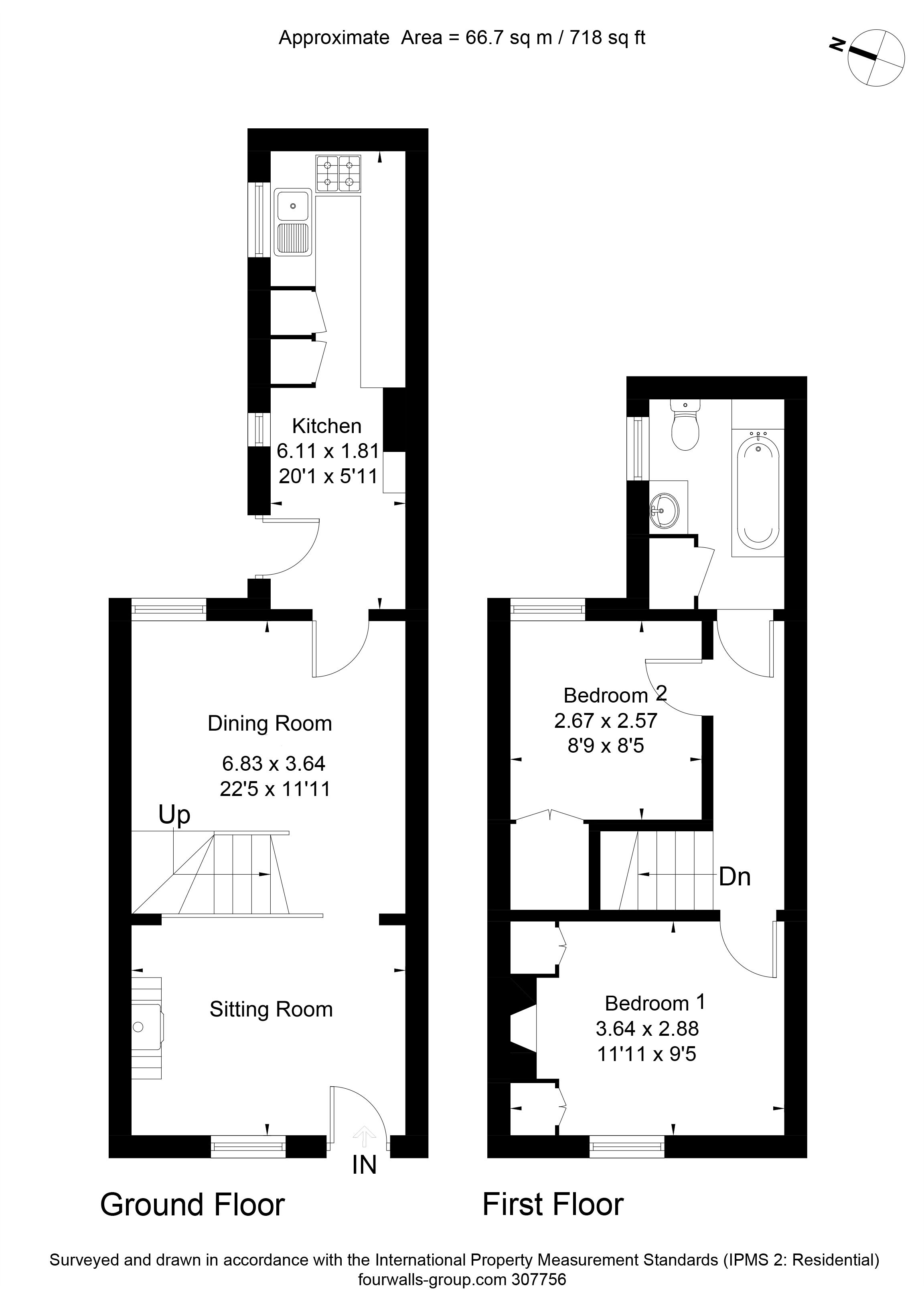 A mid terrace cottage, one of a short row of just four, constructed of brick elevations beneath a slate roof. The accommodation comprises entrance porch, open plan double reception room, part divided by the open tread staircase, creating a sitting room with log burning stove and separate dining area, as well as a long functional galley kitchen with stable door to outside. To the first floor there are two double bedrooms and bathroom. Parking is available at the front of the terrace of cottages, whilst the main private courtyard garden extends to the rear of the cottage.