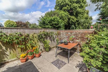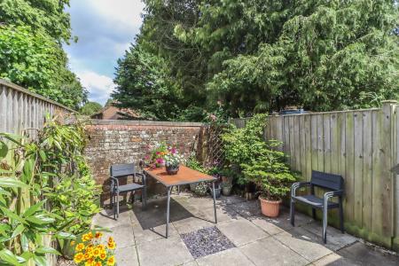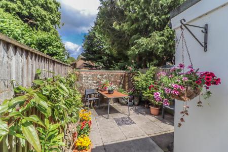 MAIN COURTYARD GARDEN Comprises an attractive paved terrace, which enjoys a good deal of privacy and is ideal for entertaining. Well enclosed on either side by high close boarded fencing and to the rear by brick walling. Shrub and flower borders.