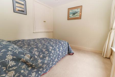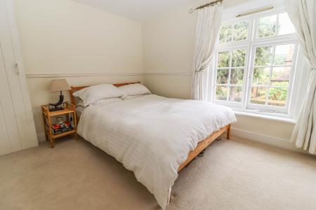 BEDROOM TWO (Double bedroom) Small pane window to rear aspect overlooking courtyard garden. Cupboard extending over stairwell. Pendant light point.