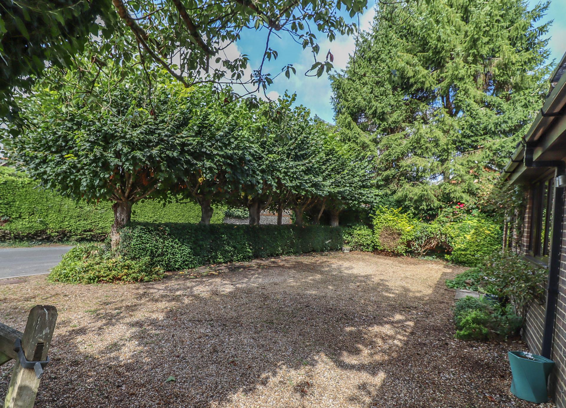Open access off the lane onto a large brick edge gravelled driveway providing comprehensive parking, access to the front entrance and integral garage. The front boundary is a feature of the property, being enclosed by a line of mature lime trees with yew hedging beneath. Wild flowering cherry tree. Hedging and shrubs to the boundaries. Paths to either side of the property lead into: