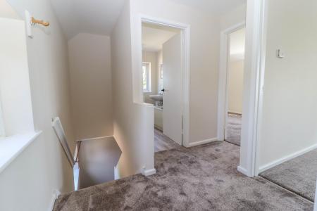 LANDING Window to front aspect. Pendant light point. Loft hatch. Doors to bedrooms and bathroom.