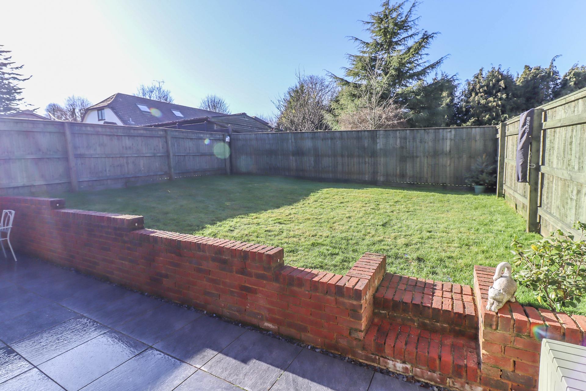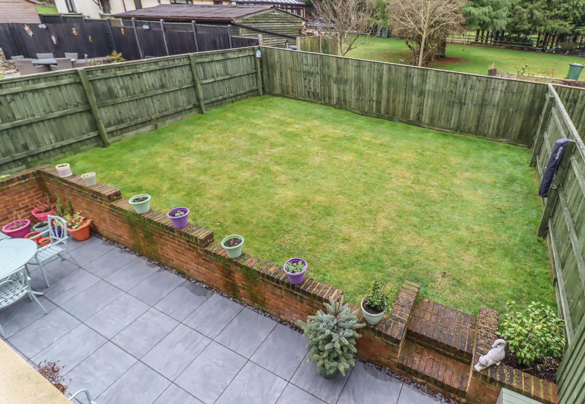 MAIN GARDEN Access via an iron gate to the side of the property extends to the rear of the house, comprising a generous slate paved patio area enclosed by staggered brick retaining wall. Brick steps to one end rise onto main lawn, gently sloping and well enclosed on all sides by close boarded fencing. Outside lantern style light. Small lean-to shed. Water butt. External power points.