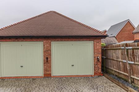 GARAGE (Semi-detached) Constructed of brick elevations beneath a hipped tile roof. Concrete base. Light and power connected. Fully boarded loft space with folding timber ladder and hatch. Electric vehicle charging point.