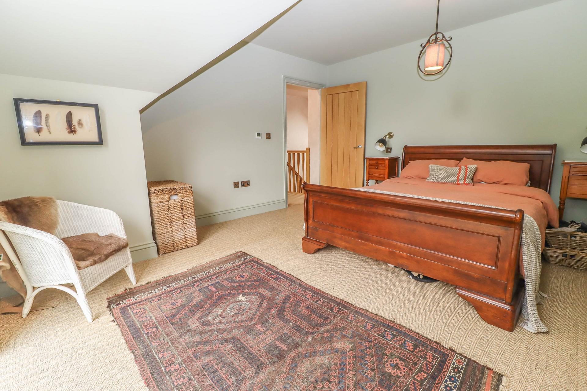 BEDROOM TWO (Double aspect) Dormer window to front with views. Velux sky light to rear aspect. Pendant light point. Bed-head wall lights.