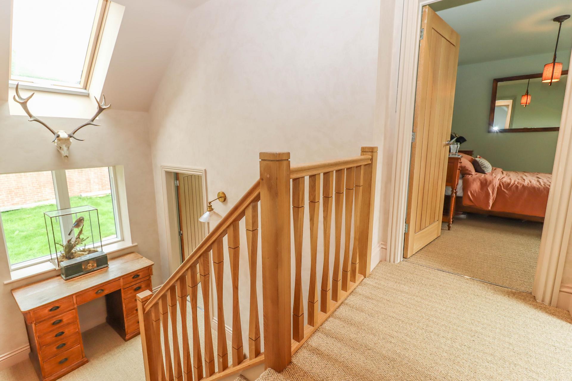 LANDING AREA Window to rear aspect with Velux sky light above. Oak staircase continues to first floor. Door into: