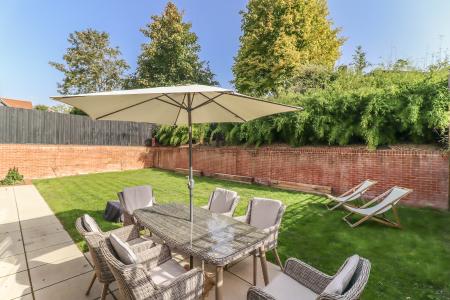 MAIN GARDEN Good size mainly laid to lawn with paved patio terrace accessed from the sitting room well enclosed by close board fencing. Raised brick wall to rear encloses an elevated border planted with bamboo with a seating area. Outside light. Outside tap.