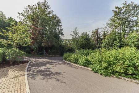 Wide access off village lane onto a tarmacadam access road with lighting and shrub and bark border to one side (for the sole use of the residents of this development). Access to: