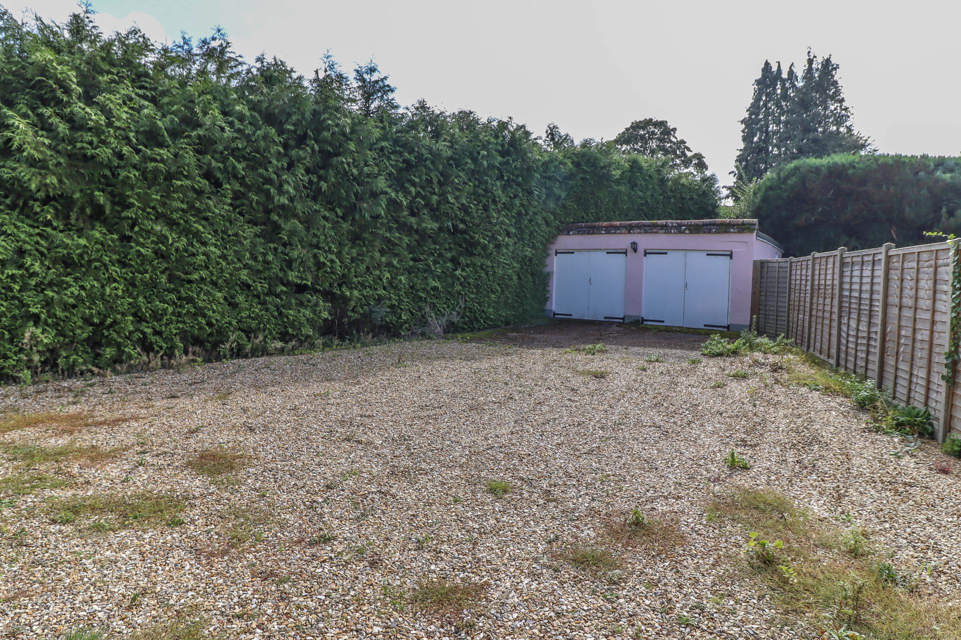 Separate private gated access of Foundry Road onto a substantial gravelled driveway enclosed by tall hedging and fencing providing extensive parking and leading to the detached double garage.