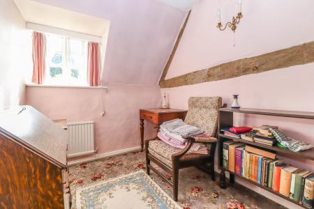 PRINCIPAL BEDROOM (Large dual aspect double bedroom) Window to rear aspect and also gable end. Built-in cupboard. Wall light. Exposed beam.
