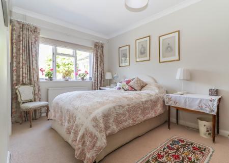 BEDROOM SUITE FOUR (Large double bedroom currently a guest suite) Window to rear aspect with beautiful views over the garden and beyond. Pendant light point with decorative ceiling rose. Coving.