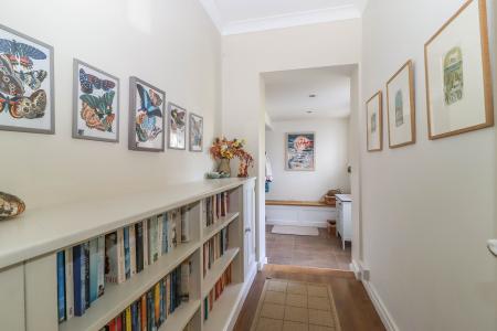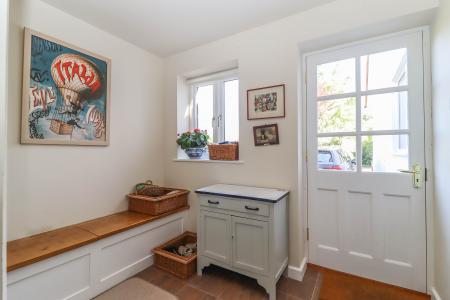BOOT ROOM Half glazed door to driveway. Window to front aspect. Oak bench with storage beneath. Coat hooks. Cupboard. Passage leading to office with door into: