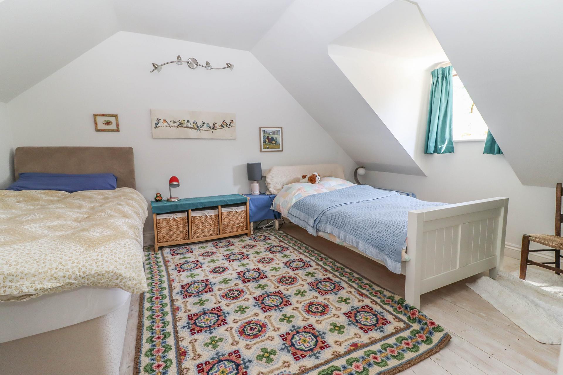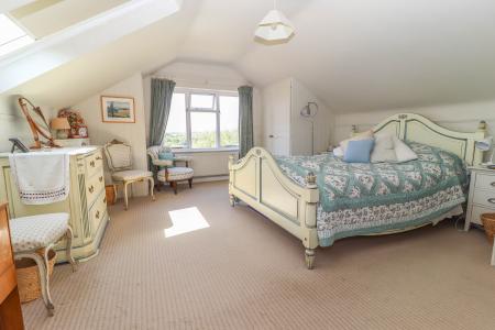 PRINCIPAL BEDROOM (Large double bedroom) Window with stunning far reaching views to rear aspect. Built-in cupboards. Pendant light point. Velux light to side aspect.